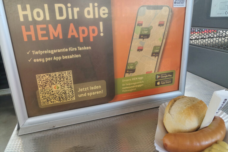 Ich habe’s getan: Ich bin zur HEM, habe mir die App geschnappt, den Tiefpreis gecheckt, mich nicht registriert – und trotzdem ganz normal getankt. Und ja: Die berühmte Zacherl-Küche hätte mich beinahe erwischt. Der „Salami-Kracher“ stand draußen bereit, aber ich bin beim Klassiker geblieben: Bockwurst, Brötchen, Senf. Punkt. Und jetzt…