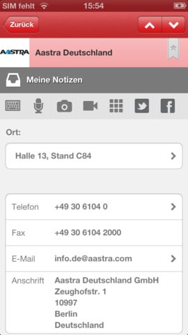 Die CeBIT App gibt dir einen Überblick über Anreise, Tickets, W-LAN und einzelne Daten und Fakten. Hinzu kommen mehr oder weniger ausführliche Infos zu Ausstellern und Veranstaltungen sowie eine Karte zur besseren Orientierung auf der Messe. Klickst du beispielsweise auf einen Aussteller, findest du dort den Messestandort, Homepage und Beschreibung zum Unternehmen und kannst auch selbst Notizen hinzufügen bzw. sogar selbst draufsprechen sowie Fotos / Videos hinzufügen und die Angaben per sozialen Netzwerk teilen. Auf dem Startscreen werden dir zudem aktuelle CeBIT heise News angezeigt. Unter der Favoriten-Funktion kannst du dir Events, Produkte usw. merken oder auch als „besucht“ abhaken. Auch direktes Feedback kann über die CeBIT App gegeben werden. Kompakter Messeführer ohne special features sozusagen.