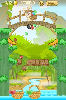 Wegen der Osterfeiertage ist der Osterhase in Eile. Er muss natürlich pünktlich sein, um die Kinder zu beliefern. Sein langer Weg führt ihn über viele Brücken und während er über die Brücken rennt, verliert er massenweise Ostereier. Damit diese nicht in den Fluss fallen, musst du sie mit einem Körbchen auffangen. Versuch so viele wie möglich zu erhaschen, damit es zu Ostern ein großes Fest geben kann. Achte aber darauf, dass du keine Bomben mit sammelst, denn dann ist das Spiel aus. Außerdem purzeln die Eier nicht immer gerade herunter, sondern werden durch Hindernisse verlangsamt und in eine andere Richtung gelenkt. Auch die Bienen, Libellen, Laubfrösche und schwimmenden Pelikane behindern zusätzlich deine Sicht.
