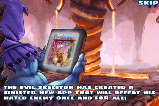 Es geht schon mit einem Augenzwinkern los: He-Man wurde von Skeltor mittels einer hinterlistigen Gaming-App ins Verließ entführt. Ob In-App-Käufe da eine Rolle gespielt haben? Man weiß es nicht. Cool gemacht ist die Action-App aber allemal: mit der Originalmusik, mit etwas Retro-Grafik und viel Story-Charme.
