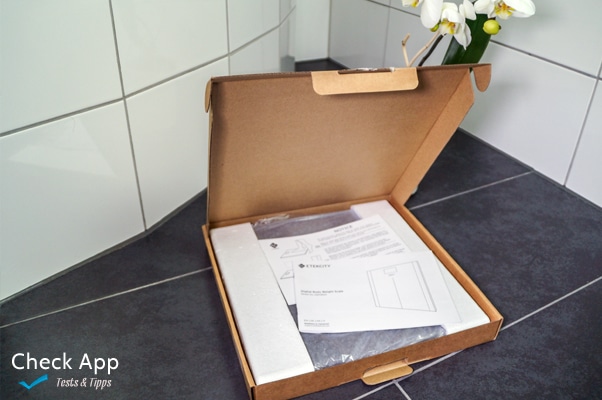 Pappkarton. Es hat sich erfreulicherweise ein Trend zum minimalistischen Design bei solchen Amazon-Artikeln durchgesetzt. Umweltfreundlich und einfach schützend. Klar, man kauft online eben nicht nach den bunten Bildchen auf der Verpackung. Diese würden wohl eine schlanke Person auf einer Waage zeigen. Hier wie immer einfach Pappkarton mit den Produkteigenschaften. Styropor ließ sich als Innenverpackung nicht vermeiden, da die Waage aus Glas ist.