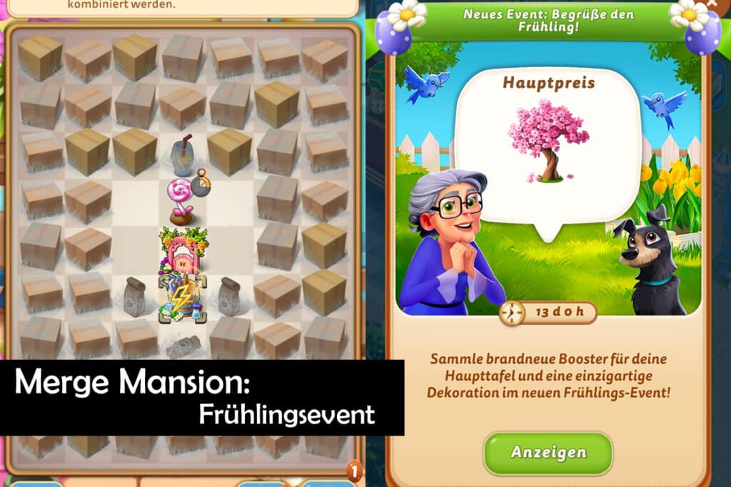Frühling, da bist du also. Holt die Laubrechen, Gartenwerkzeug Stufe 7 aus den Generatoren und nehmt die sicheren Zeichen des Frühlings war. Spätestens jetzt sollten alle merken, welche die Überschrift als zu klein und unleserlich finden, dass wir bei Merge Mansion sind. Und mit etwas Glück hast du sogar so ein Gerät schon aus dem Inventar. Und kannst sofort reinstarten in die Jagd nach den Event-Punkten. Denn, oh wunder, der Entwickler der App hat offenbar ein Ohr für die Community und die Preise als Belohnungen verbessert, welche nicht nur staubige Deko sind.