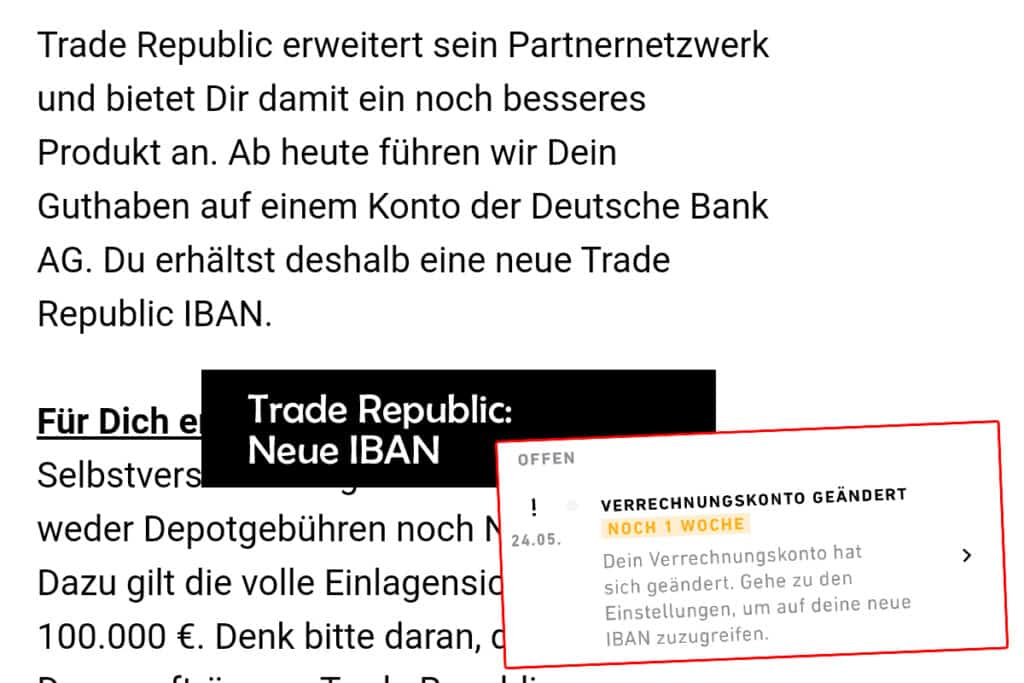 Das Partnernetzwerk werde erweitert, deshalb sei das Geld jetzt auf einem Verrechnungskonto der Deutschen Bank und man solle eine neue IBAN nutzen für Überweisungen. Soweit so klar. Wenn man einen Cent ähm Sekunde länger drüber nachdenkt, so ist es allerdings verwirrend, warum dies nun eine Erweiterung darstellt. Wer hat als Bestandskunde von Trade Republic auch diese Mail mit dem Betreff „Deine neue Trade Republic IBAN“ erhalten? Wir klären mal schnell und sachlich auf.