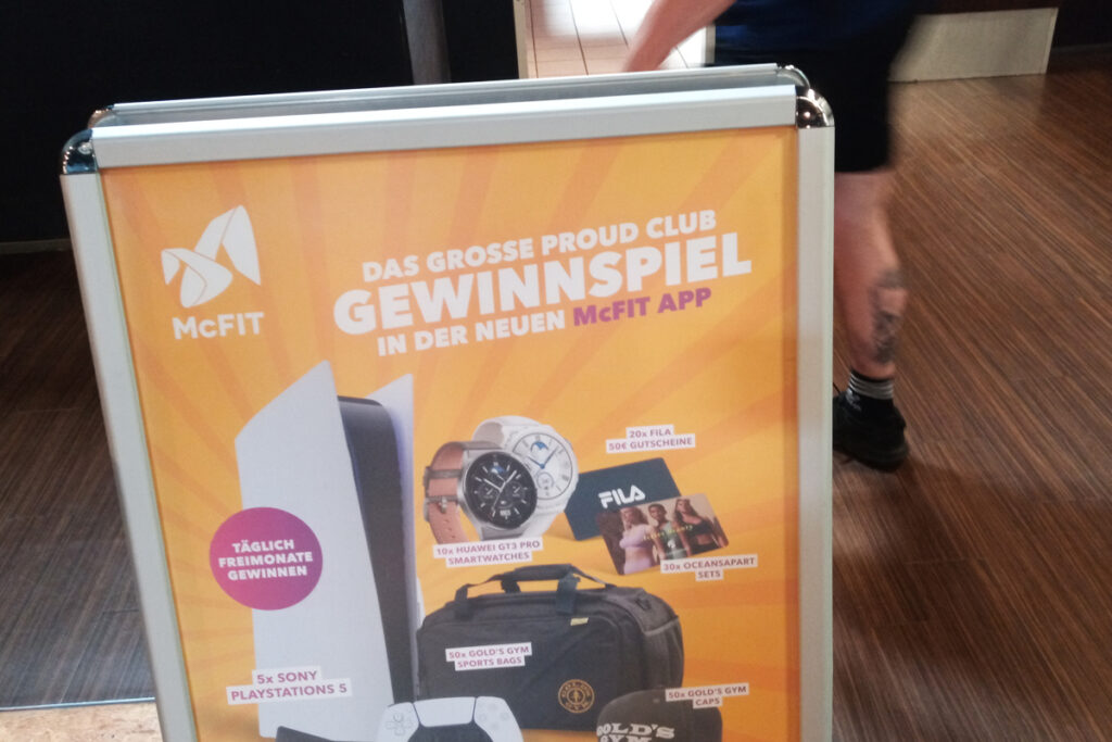 Rund an der Beinpresse baumelt es herum, am Butterfly fliegt es wie ein Schmetterling hoch und runter. Nein, nicht das Übergewicht in Form von Speckrollen und Bäuchen. Gemeint ist die übertrieben präsentierte Werbung für die „neue“ McFIT-App. Wenigstens stört sie nicht am Rudergerät, was schon genug klackt. Die „angebliche“ App-Neuheit wird mit einem großen Gewinnspiel begleitet. Während die einen noch die Preise studieren, wie das unglücklich formulierte „täglich Freimonate gewinnen“ oder die obligatorische PS5, mit der sowieso niemand mehr spielt (da es selbst Diabolo als App jetzt gibt und die ist wirklich neu), fragen sich die App-Experten etwas anderes: Wie ist bitte neu an der neuen McFIT-App?
