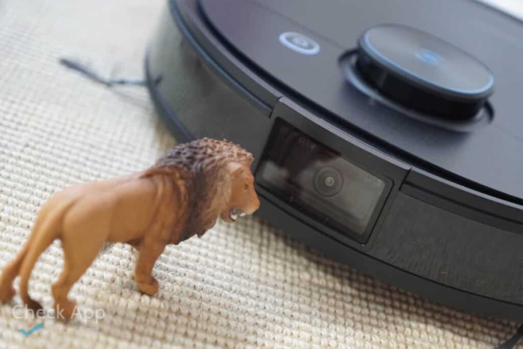 An der Front ist eine Kamera verbaut. Diese liefert klare Bilder in Echtzeit in die App und ermöglicht so eine Überwachungsfunktion. Es gibt sogar ein 2-Wege-Audio, sodass man auch sprechen kann. Offenbar ermöglicht die Kamera die Objekterkennung per KI, welche recht zuverlässig funktioniert. Konkret werden 15 verschiedene Objekte erkannt, wie Kabel und Socken, aber auch Lebewesen/Menschen.