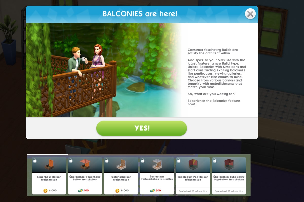 Dabei war es gerade erst Februar als ein Nutzer fragte im Forum: „Ich sehe auf einer Facebookseite, das viele Sims Häuser mit Balkon erstellt haben, wie macht man das ? Ich bekomm das nicht hin.“ und die Antwort erhielt, es sei derzeit nur per Cheat oder Glitchausnutzung möglich. Cool also, dass es nun wirklich Balkone gibt!
