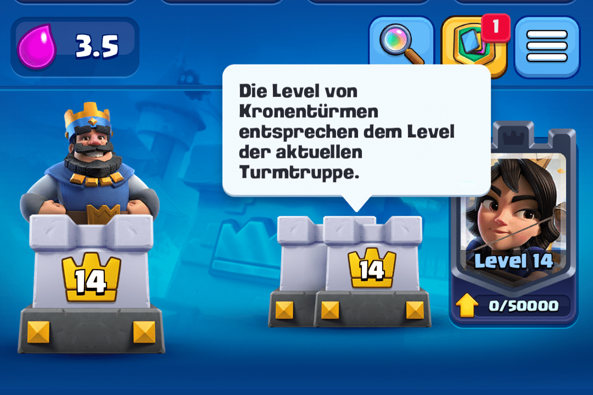Die Freischaltung und Verbesserung der Turmtruppen folgt einem bekannten Muster, fügt aber dem Spiel eine neue Schicht der Strategie hinzu. Durch das Sammeln von Kartenexemplaren und Gold können Spieler ihre Turmtruppen aufwerten, wobei das Level der Turmtruppe an das des Königturms gebunden ist. Dies gewährleistet ein ausgeglichenes Spielgeschehen, da Turmtruppen nicht über das Level des Königturms hinaus verbessert werden können.