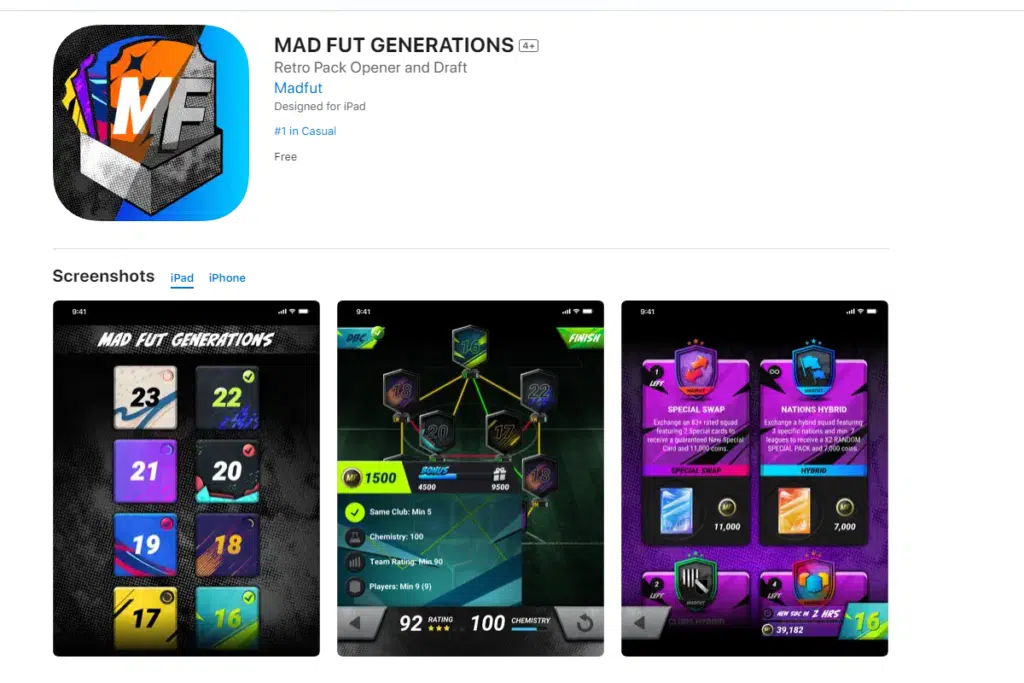 Abschließend bietet MADFUT Generations eine Plattform, auf der Spieler legendäre Spiele wie FIFA 18 (MADFUT 18) erleben können, die für viele als die besten Versionen der FIFA-Serie gelten. Das Spiel ermöglicht es den Spielern, in nostalgische Erinnerungen einzutauchen und gleichzeitig moderne Elemente des Spiels zu genießen.