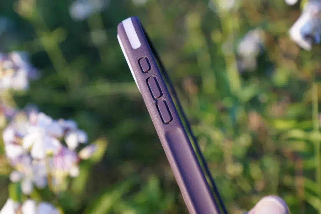 Die Form sitzt perfekt. Kein Wackeln, keine Spalten. Die Kameraaussparung ist präzise gefräst, die Tasten haben spürbaren Druckpunkt und sind durch leicht erhöhte Konturen blind zu finden – ein kleines, aber feines Detail.